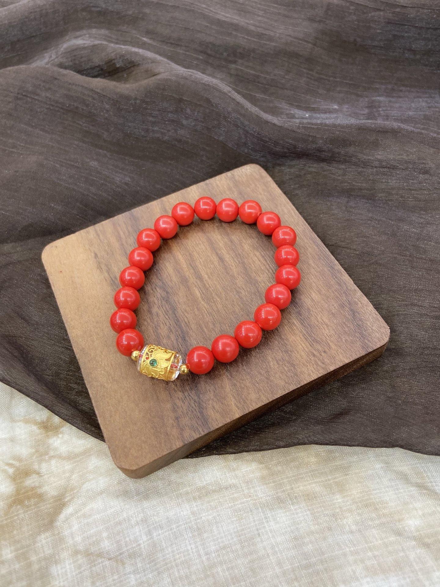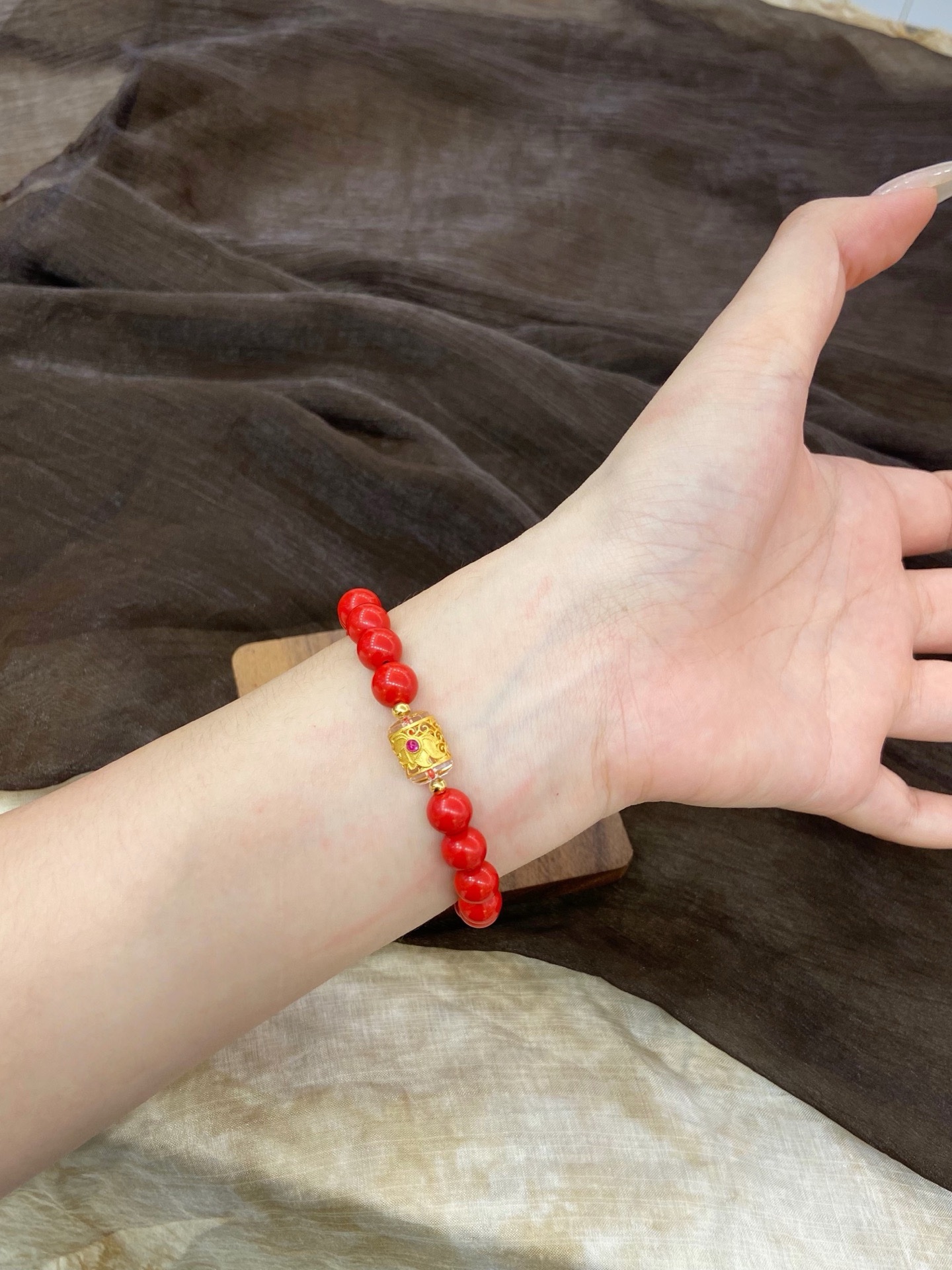 8mm红砂搭配925银镀金镶白水晶莲花路路通