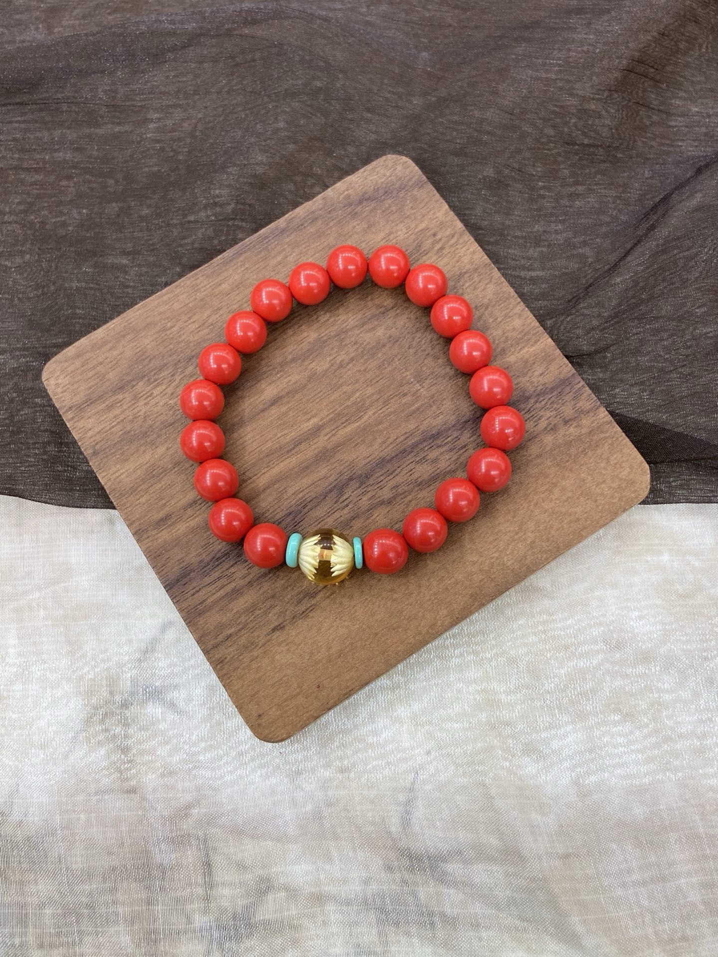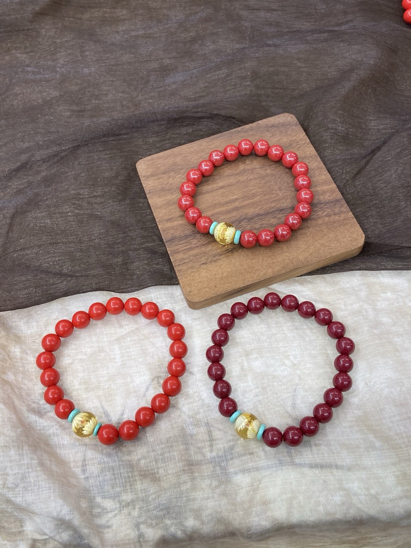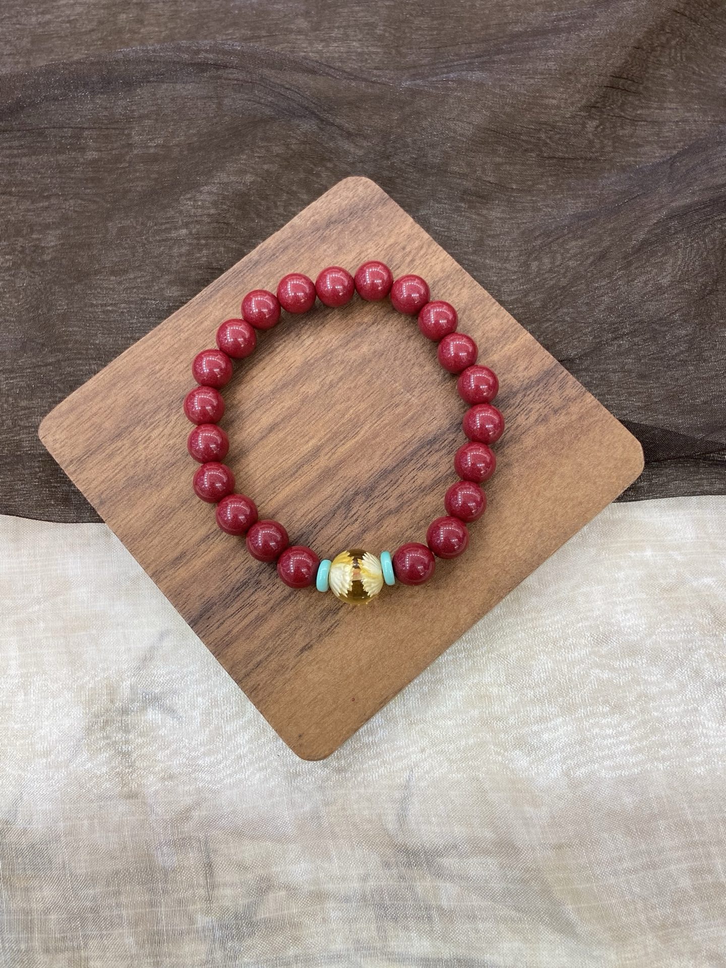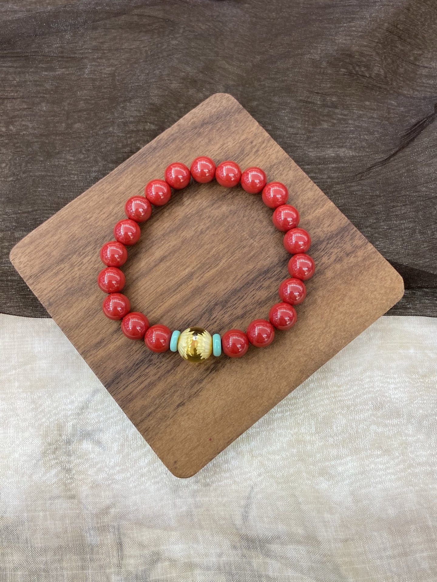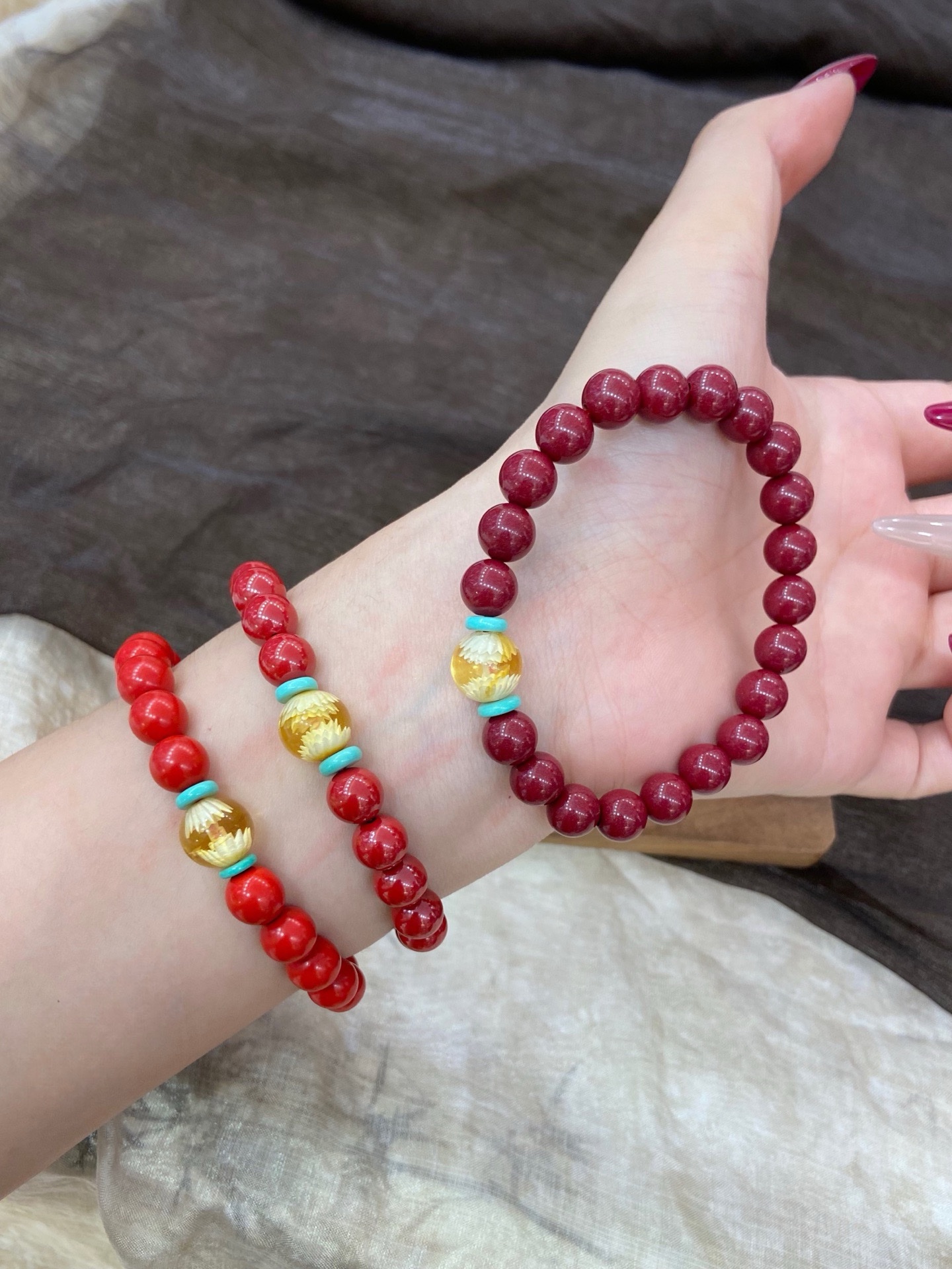 8mm朱砂搭配阴雕蜜蜡莲花🪷、菱镁矿